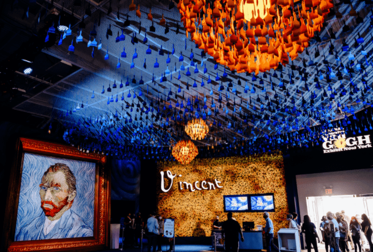 《梵高·身臨其境》通過紐約的50萬立方英尺的投影將藝術(shù)家的杰作帶入生活,成為北美最受歡迎的體驗場景。